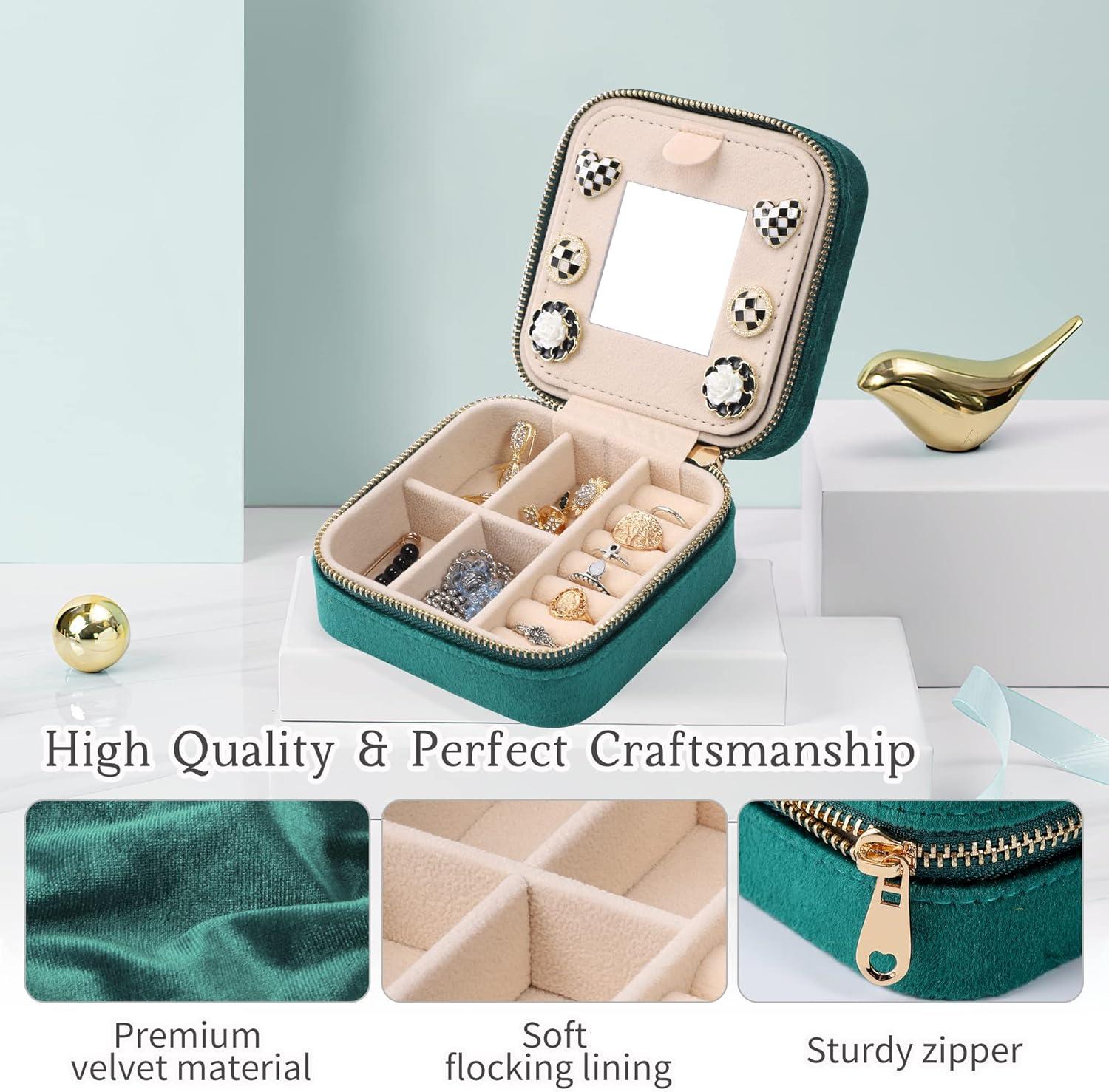 Plush Velvet: This high-quality velvet jewelry box is wrapped in soft, luxurious velvet for an elegant feel. The zipper closure gives our travel jewelry box a classic and stylish look and it's easy to open and close