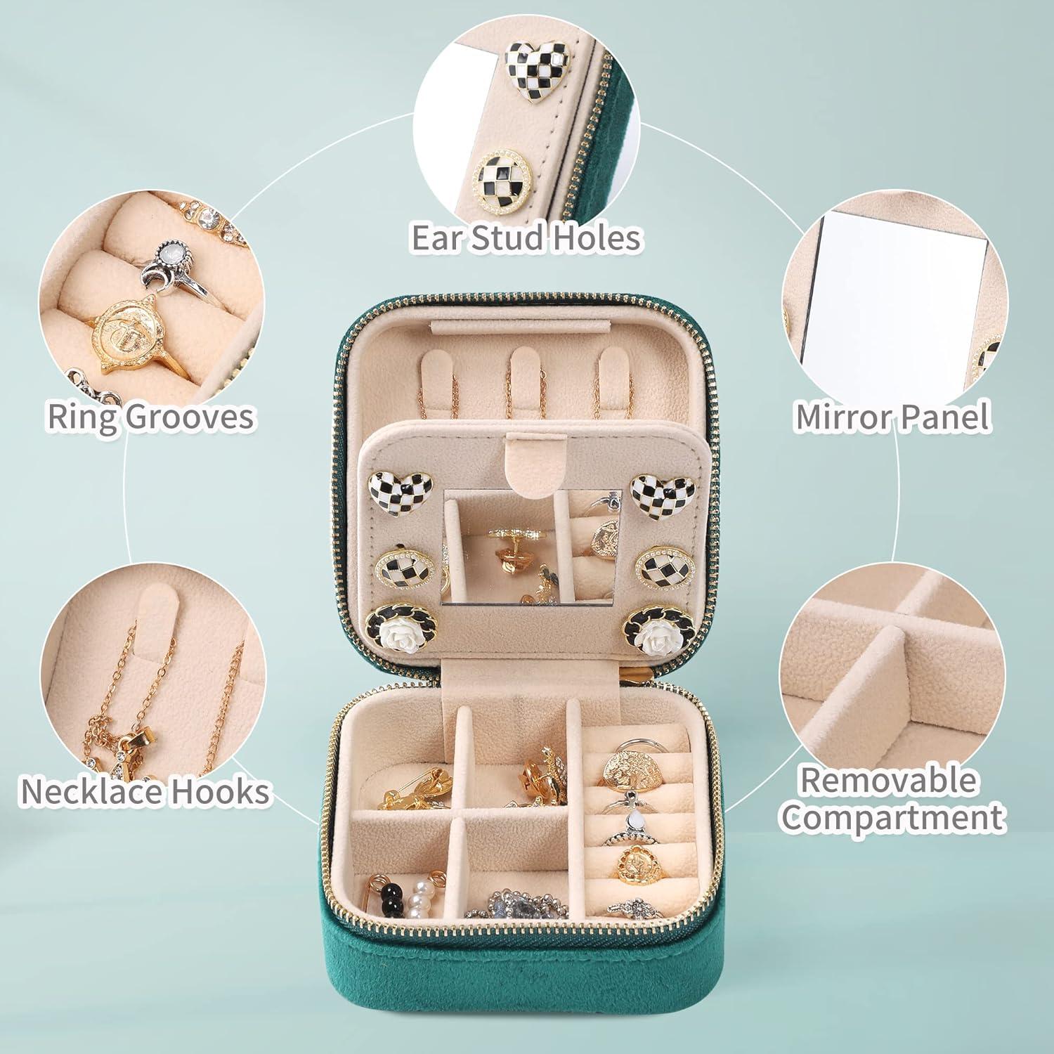 Multifunctional Velvet Jewelry Box: This travel jewelry organizer is a small but large-capacity square box. This lightweight jewelry travel case can hold multiple earrings, rings, necklaces, and bracelets